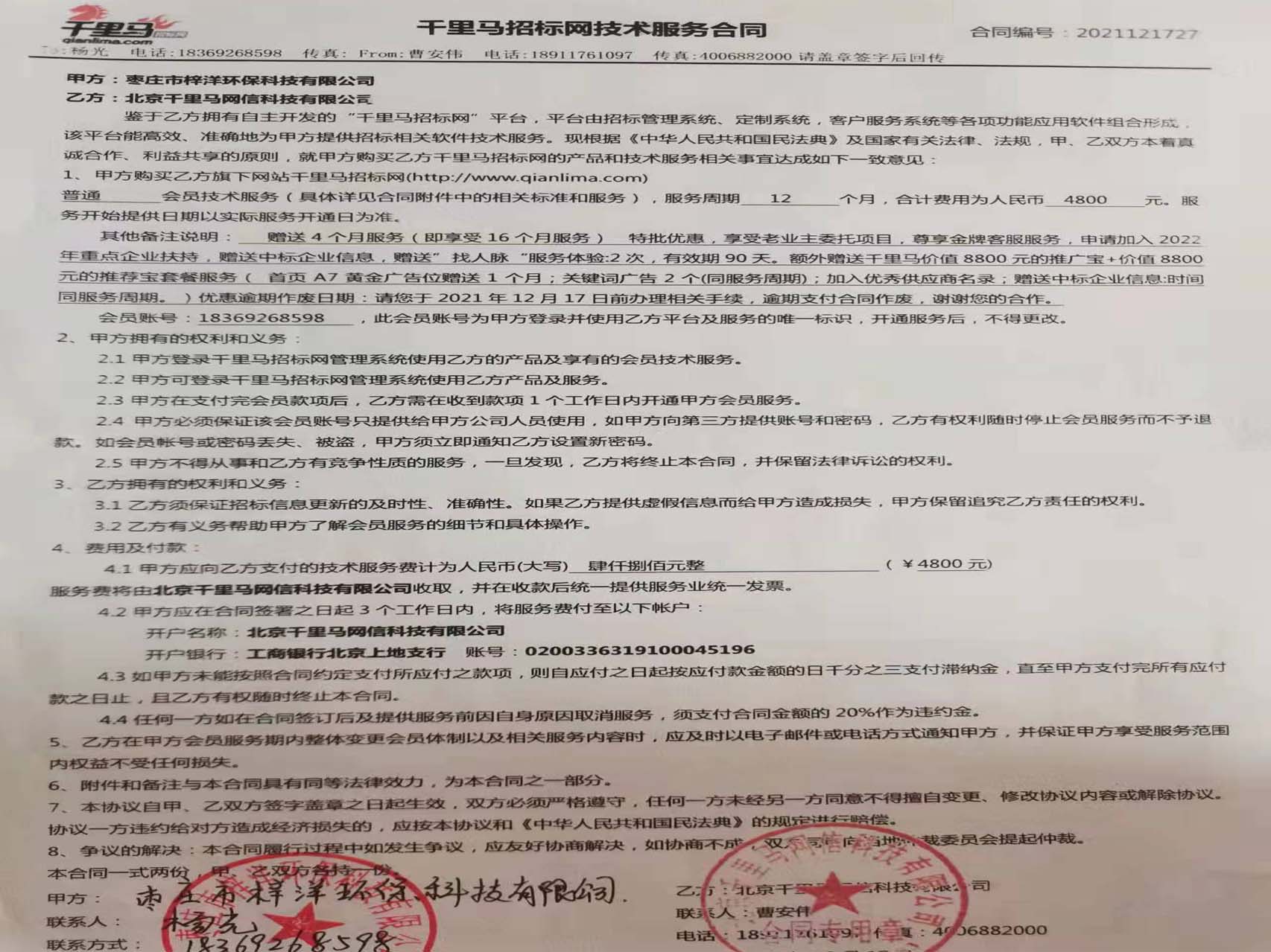 千里馬招標服務合同